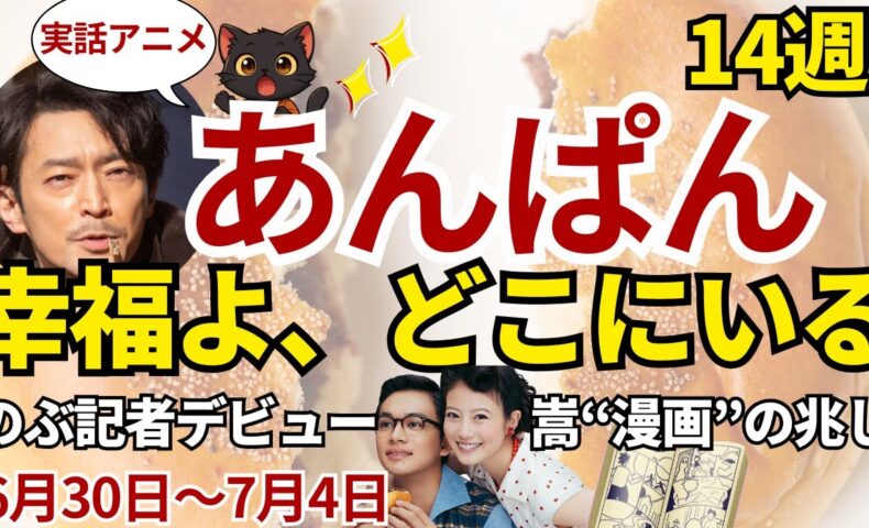 第14週「幸福よ、どこにいる」は、戦後という混乱の中で、のぶと嵩がそれぞれ“再出発”を遂げていく感動回。のぶは女性記者として初の一歩を踏み出し、嵩は健太郎の言葉で再び「描くこと」への情熱を取り戻していきます。
