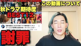 【動画】【謝罪】チャンネル史上最大の失態をしました。秋ドラマの期待度ランキング動…