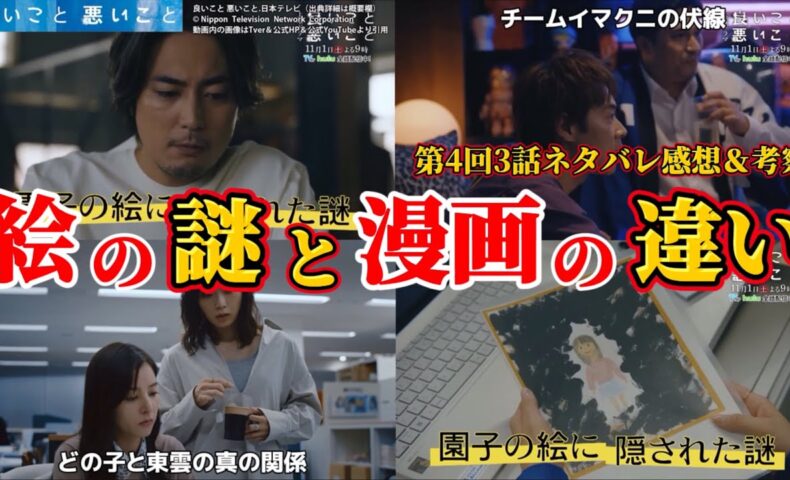 【動画】【良いこと 悪いこと(いいこと 悪いこと)】絵の謎とマンガ版との違い。第4回3話ネタバレ感想・伏線&ドラマ考察。キャスト:間宮祥太朗、新木優子、森本慎太郎(SixTONES)他。イイワル