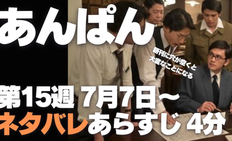 のぶは高知新報の入社試験を受けに来た嵩と久々の再会を果たします。そんな折、翌日の新聞に穴が空きそうだと、夜遅くに編集局に連れて来られた嵩は言われるがまま挿絵で埋めることに。のぶが心配そうに見守る中、嵩は…